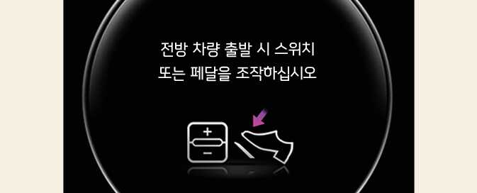정차 후 약 30초가 지나면 클러스터에 위 그림과 같이 안내문이 표시됩니다. 다시 출발하려면 가속 페달을 밟거나, (+) 또는 (-) 스위치를 올리거나 내리거나, 「