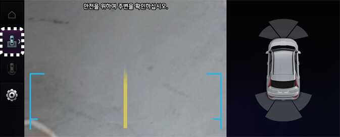 표시 정보의 후방 주차 가이드가 선택되어 있는 경우, 후방 모니터 영상 내 후방 탑 뷰 가이드라인이 표시됩니다.