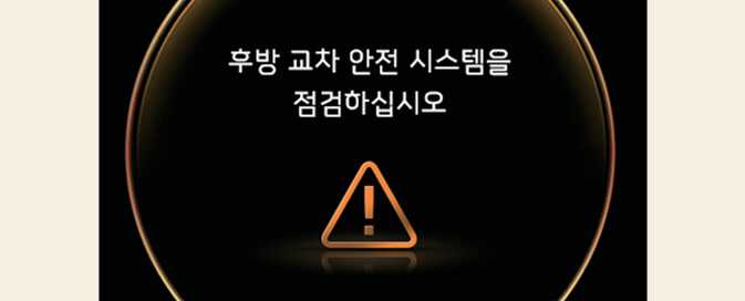후방 교차 충돌방지 보조에 이상이 있으면 클러스터에 경고문이 일정시간 표시되며 통합 경고등「