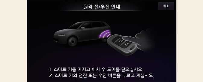 원격 전/후진 기능은 스마트키를 이용하여 차량 밖에서 원격으로 작동할 수 있습니다.