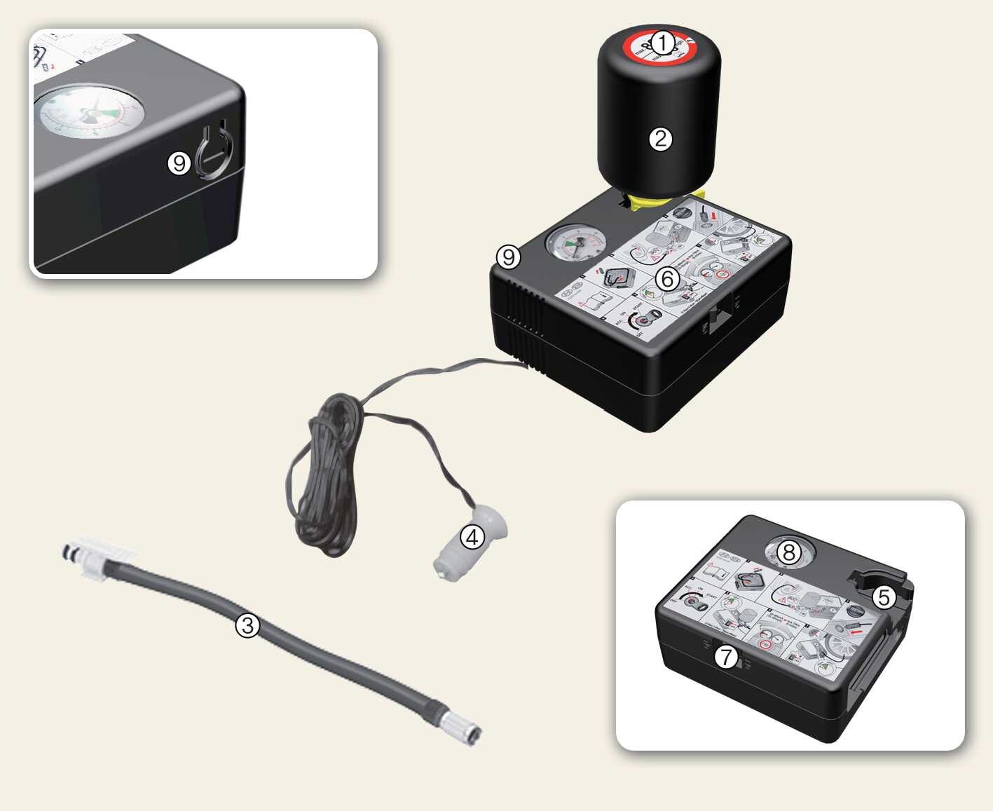 커넥터와 케이블, 연결 호스는 컴프레서에 연결되어 있습니다.