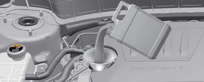 엔진 오일을 보충하거나 교체할 때 차체나 엔진룸에 오일을 흘리지 말고, 묻을 경우 즉시 닦으십시오.