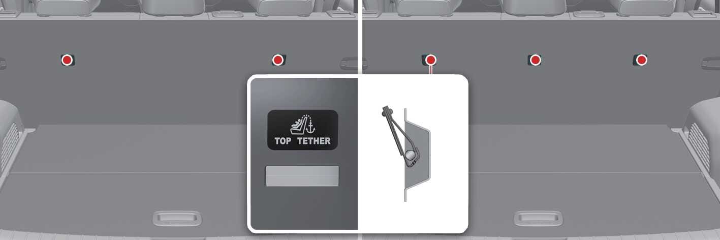 Ankerpunkte für Kinderrückhaltesysteme sind so konzipiert, dass sie nur der Last eines korrekt befestigten Kinderrückhaltesystems standhalten. Sie dürfen unter keinen Umständen für die Befestigung von Sicherheitsgurten für Erwachsene oder für die Befestigung von Gegenständen oder Ausrüstungsteilen des Fahrzeugs verwendet werden.