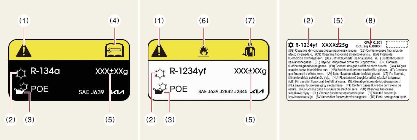 Kennzeichnung des Kältemittels für die Klimaanlage