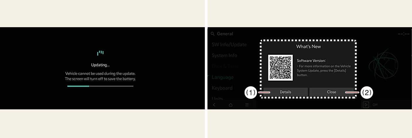 Beachten Sie, dass das Hochspannungsmodul zum Laden der 12V-Batterie während der Softwareaktualisierung aktiviert werden kann.