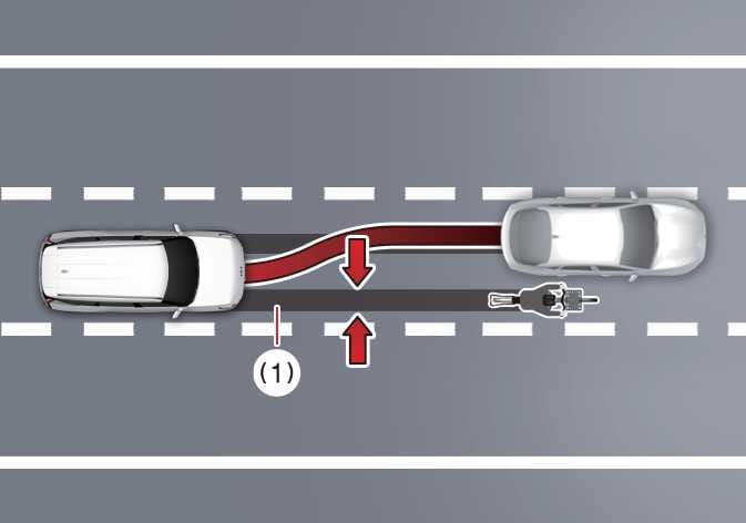 Die Funktion Fahrspurwechsel bei Gegenverkehr vermeidet eine Kollision mit einem entgegenkommenden Fahrzeug oder einem motorisierten Zweirad beim Spurwechsel durch Unterstützung des Fahrers beim Lenken. |