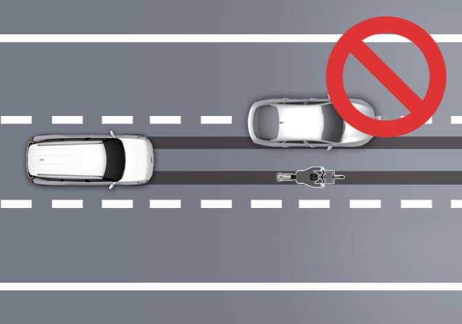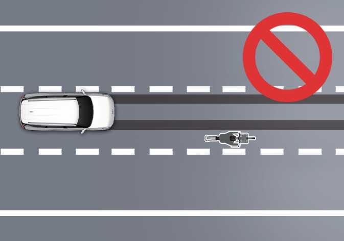 Das vorausfahrende Fahrzeug fährt mit einer Seite auf der Fahrbahnmarkierung.