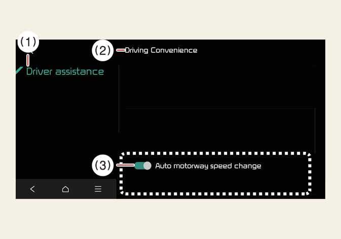 Wenn ein Problem mit der navigationsgestützten intelligenten Tempomatsteuerung vorliegt, kann die Funktion nicht über das Einstellungsmenü eingestellt werden.