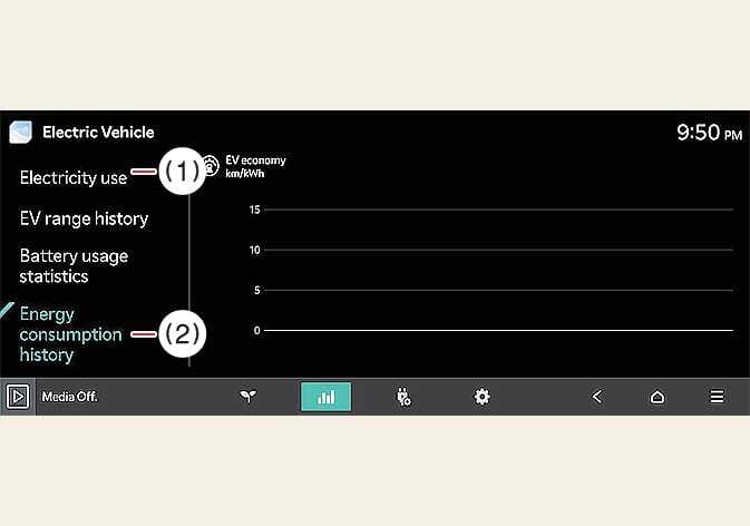 It is possible to check the history of energy consumption with the date and distance of previous driving. The icon is displayed on the most efficient energy economy record.