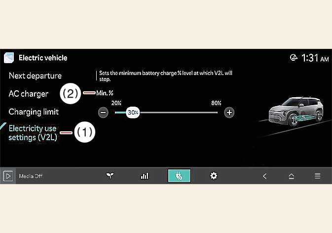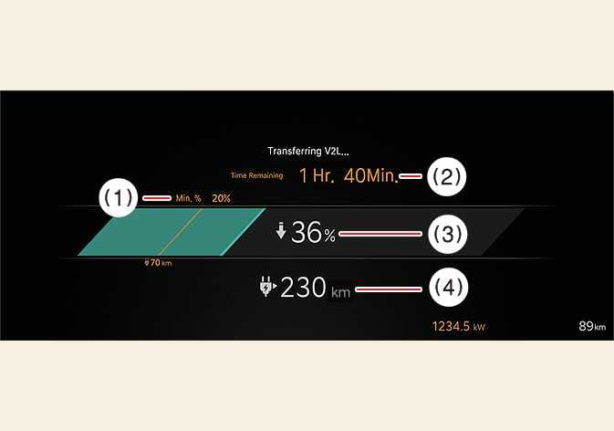 Check various information about the V2L in the infotainment system when using the V2L.