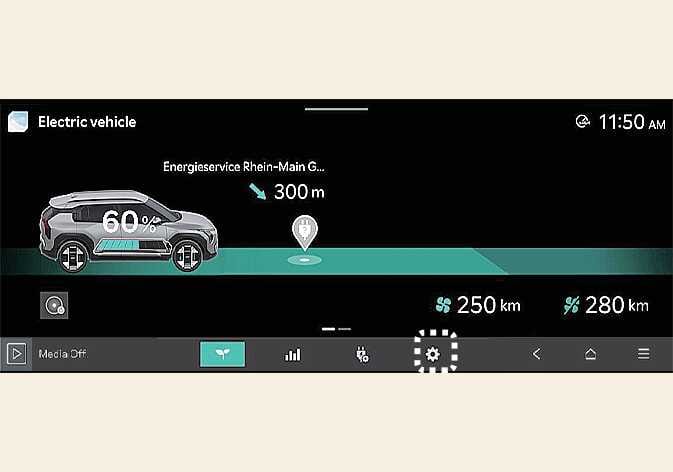 Select the icon on the screen. You can set the charging limit, charging current, Battery conditioning mode and utility mode functions.