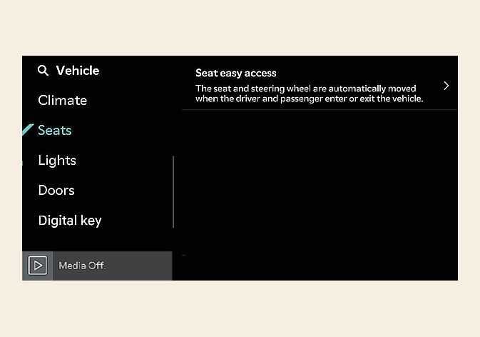 Seat Easy Access: The seat and steering wheel are automatically moved when the driver enters of exits the vehicle.