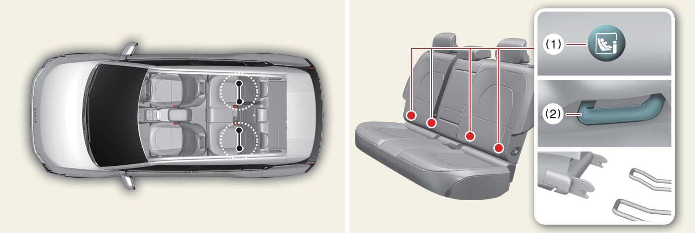 ISOFIX anchorages are metal bars built into the vehicle. There are two lower anchors for each ISOFIX seating position that will accommodate a Child Restraint System with lower attachments.