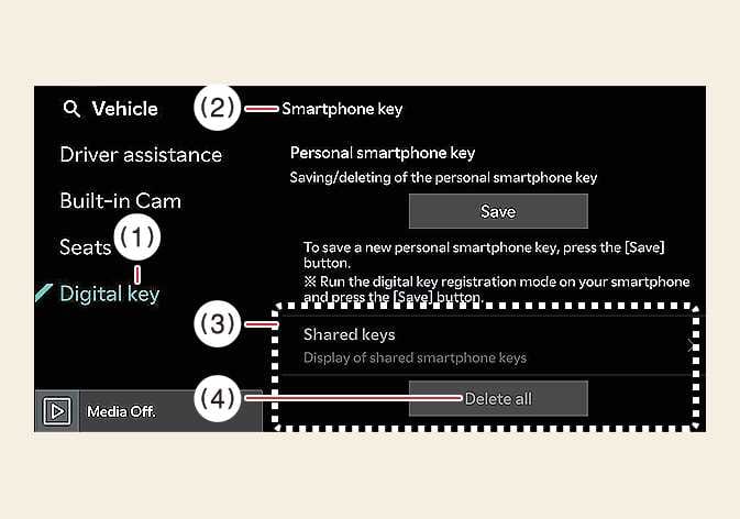 If the owner's smartphone has been changed, the new smartphone can be registered after only deleting the previous Digital Key 2 (Smartphone).