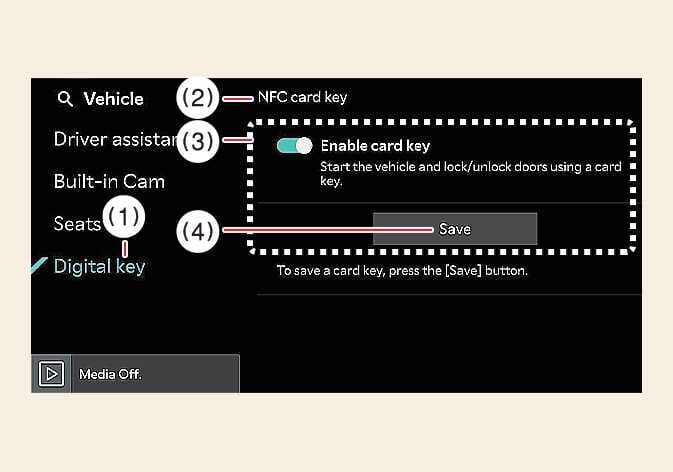 To use the card key as a digital key 2, register the card key in your vehicle system in accordance with the following procedures.