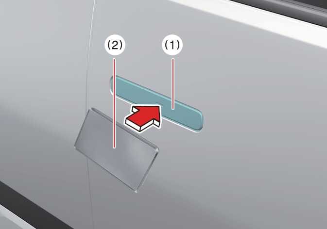 If the driver touches the NFC antenna of the registered card key 2 on the driver's or passenger's door handle authentication pad (1) for more than 2 seconds, the door will lock or unlock.