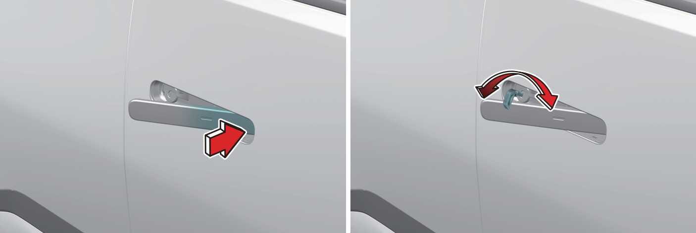 Press the front part of the door handle to pull out the rear part of the door handle.