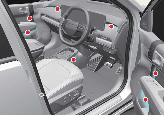 The ambient lights are installed in the front instrument panel, front doors, and the top/bottom of the centre console.