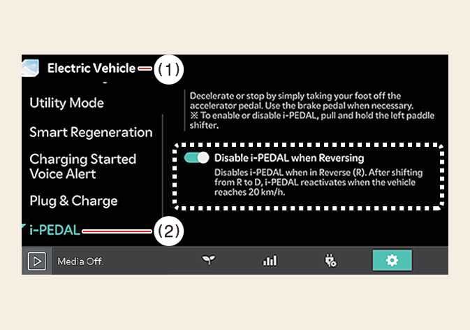 On the home screen of the infotainment system, allows you to choose whether to use i-PEDAL when reversing.