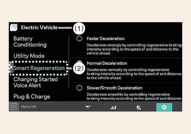 Smart Regenerative Braking Distance level allows you to adjust the distance to the vehicle ahead according to the driver's distance level (Level 1 / Level 2 / Level 3).