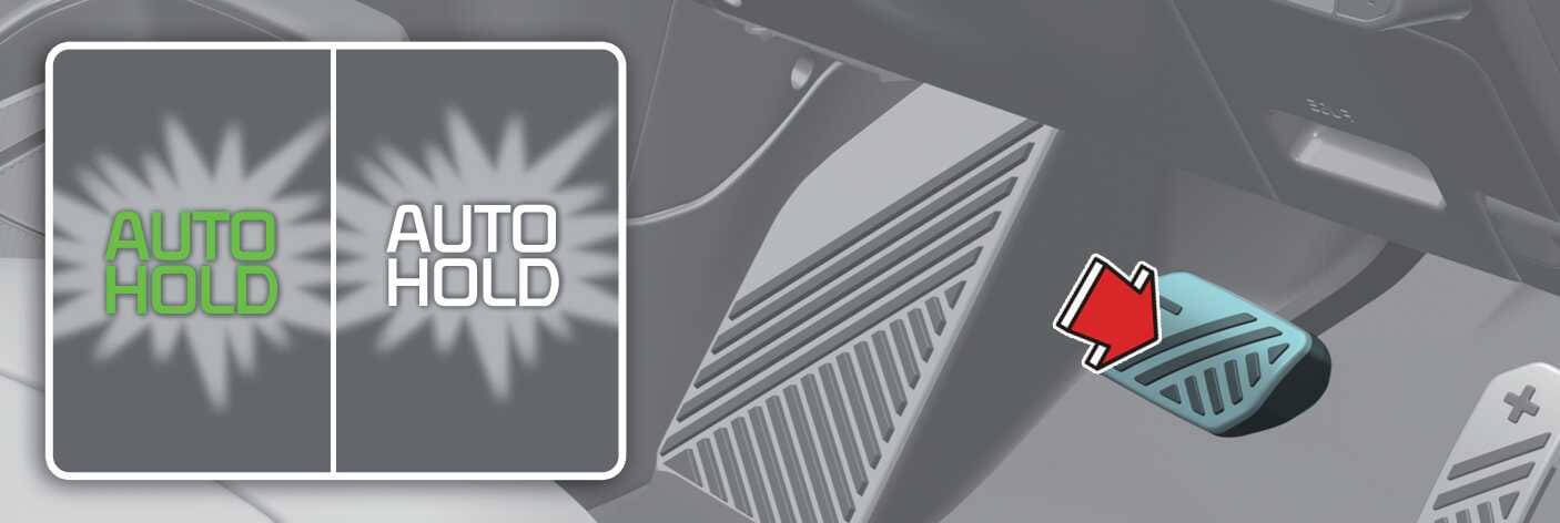 The AUTO HOLD indicator changes from white to green when the vehicle is stopped.