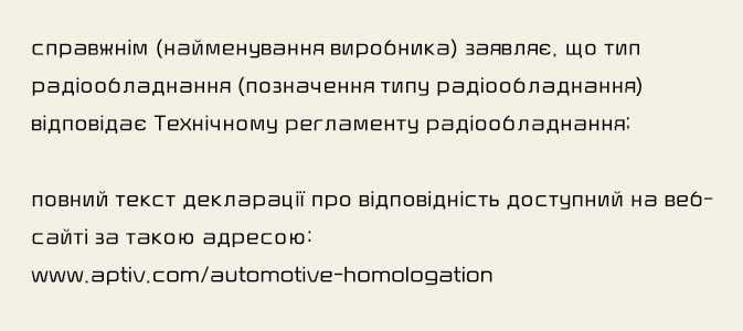 The radio frequency components (Front Corner Radar/Rear Corner Radar) complies (if equipped):