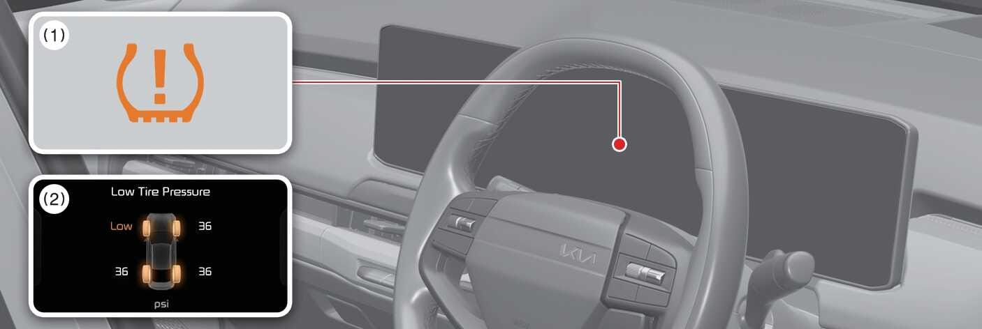 As an added safety feature, your vehicle has been equipped with a tyre pressure monitoring system (TPMS) that illuminates a low tyre pressure telltale when one or more of your tyres is significantly under-inflated. Accordingly, when the low tyre pressure telltale illuminates, you should stop and check your tyres as soon as possible, and inflate them to the proper pressure. Driving on a significantly under-inflated tyre causes the tyre to overheat and can lead to tyre failure. Under-inflation also reduces electric energy efficiency and tyre tread life, and may affect the vehicle's handling and stopping ability.