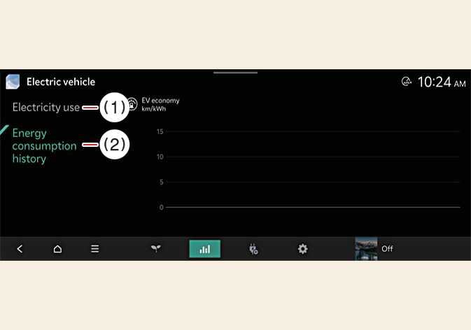 Si può verificare la cronologia del consumo di energia elettrica in base alla data e alla distanza della percorrenza precedente. L'icona viene mostrata sulla voce di consumo di energia elettrica più efficiente.