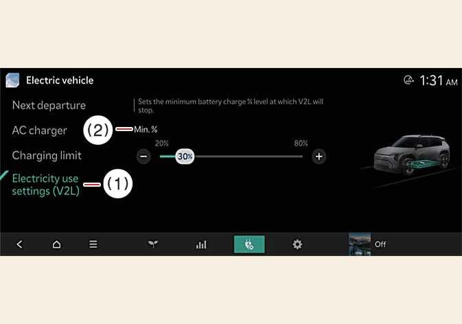 Quando si utilizza la funzione V2L, leggere le varie informazioni ad essa relative nel sistema di infotainment.