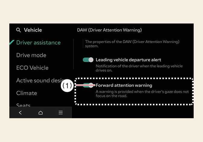 Con il veicolo in DRIVE READY, selezionare nel sistema di infotainment per stabilire se avvalersi o meno della funzione.