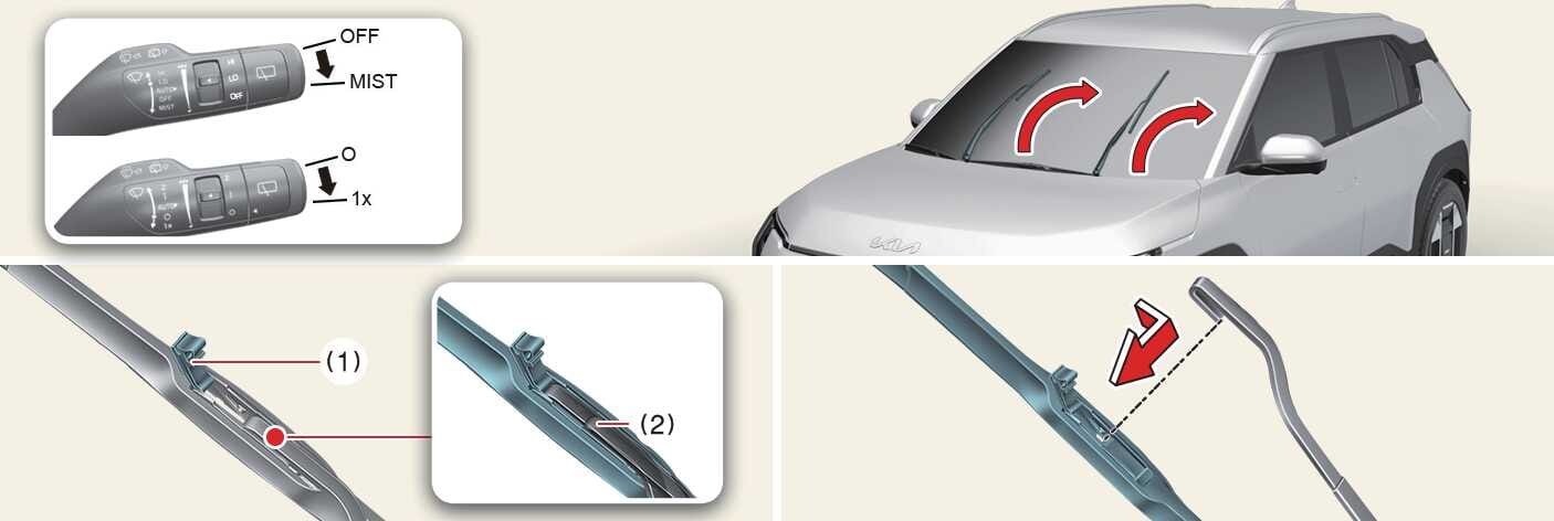 Tenere premuto l’interruttore tergicristalli per più di 2 secondi.