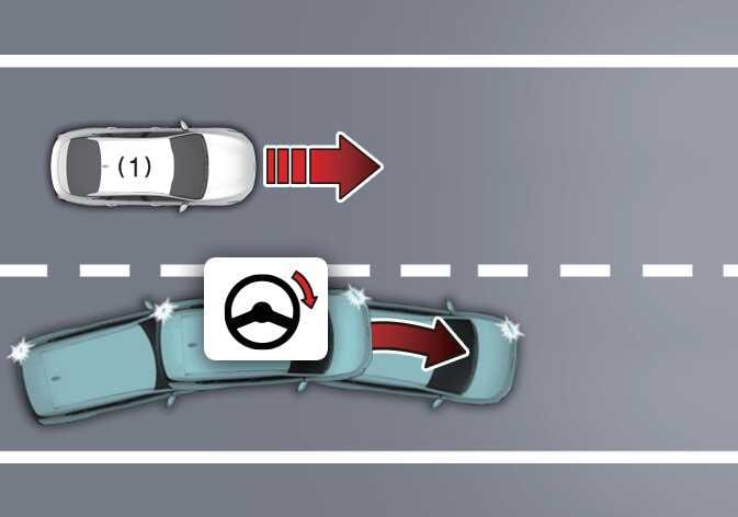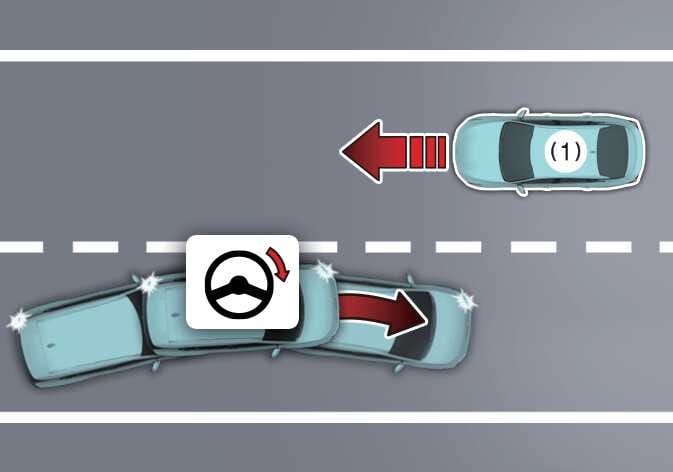차로 내 전방의 차량, 이륜차, 보행자 및 자전거 탑승자와의 충돌 위험이 판단되고 운전자가 충돌을 피하기 위해 스티어링 휠을 조작하면 조향을 도와줍니다.