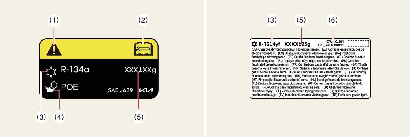 Welk koelmiddel er in uw auto wordt gebruikt, kunt u zien op een label aan de binnenzijde van de motorruimte.