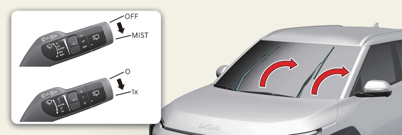 Zet de ruitenwisserschakelaar binnen de 20 seconden in de stand voor enkelvoudig wissen (MIST/1x).