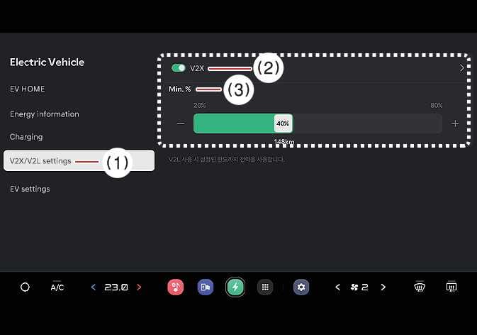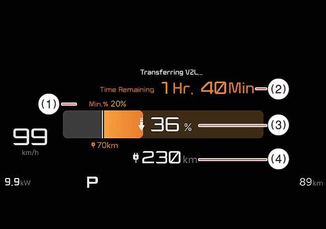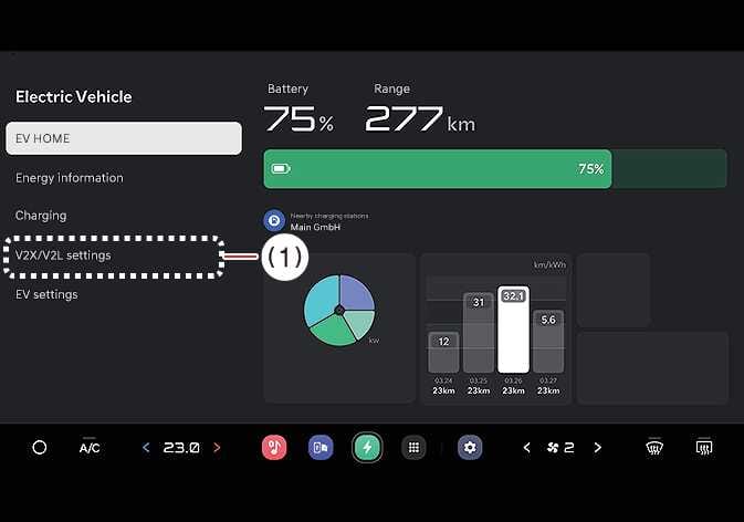 Überprüfen Sie verschiedene Informationen über V2L im infotainment-System, wenn Sie V2L verwenden.