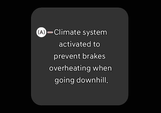 (A): Klimasystem aktiviert, um ein Überhitzen der Bremsen beim Bergabfahren zu verhindern. |