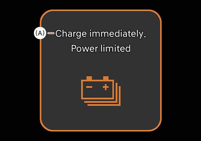 Die Fahrzeugleistung wird reduziert, um den Energieverbrauch der Hochvoltbatterie zu minimieren. Laden Sie die Batterie sofort auf.