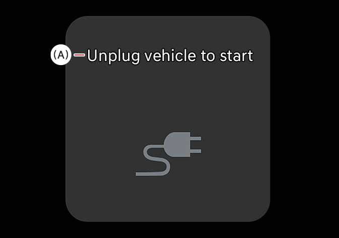 Diese Meldung wird angezeigt, wenn Sie das Fahrzeug starten, ohne das Ladekabel abzuziehen und nicht aus der Parkstufe schalten. Entfernen Sie das Ladekabel und schalten Sie dann das Fahrzeug ein.