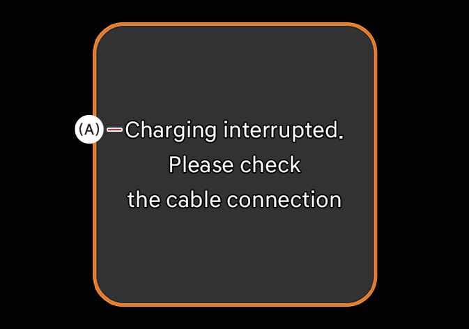 (A): Ladevorgang unterbrochen. Überprüfen Sie den Kabelanschluss. |