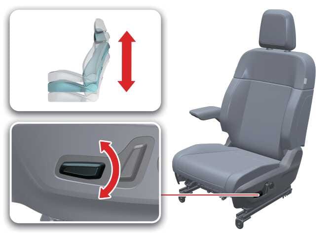 Ziehen Sie den hinteren Teil des Steuerschalters nach oben, um die Sitzfläche hinten anzuheben oder drücken Sie ihn nach unten, um die Sitzfläche hinten zu senken.