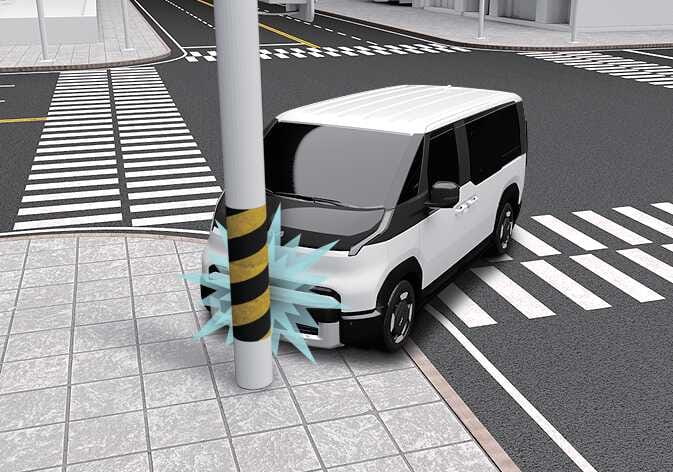 Es ist möglich, dass Airbags bei einer Kollision mit einem Objekt wie einem Pfahl oder einem Baum, wo sich der Aufprallpunkt auf einen schmalen Bereich konzentriert und wo nicht die volle Aufprallkraft an die Sensoren geliefert wird, nicht ausgelöst werden. |