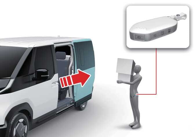 Bei Fahrzeugen, die mit einem Smart-Key ausgestattet sind, kann die Schiebetür mit dem System der intelligenten Schiebetür mit automatischer Öffnung geöffnet werden.