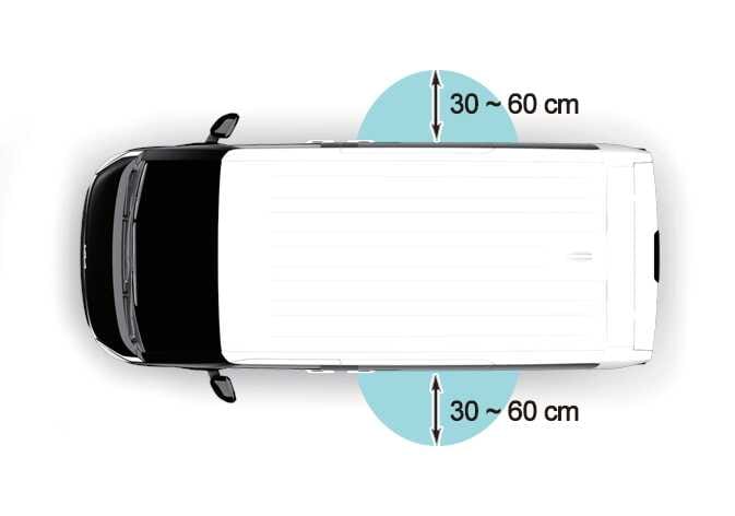 Die Schiebetür mit automatischer Öffnungsfunktion funktioniert mit einem Begrüßungsalarm, wenn der Smart-Key in einem Abstand von 30 – 60 cm (12 24 in.) von der Schiebetür erkannt wird.