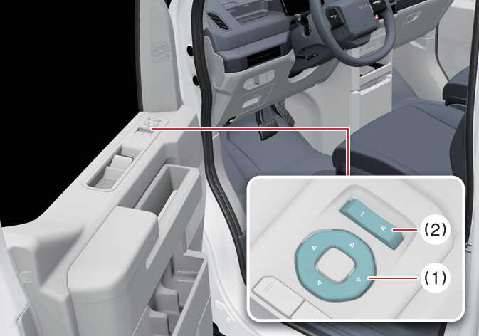 Verschieben Sie den R- oder L-Schalter (2), um den rechten oder linken Spiegel auszuwählen.