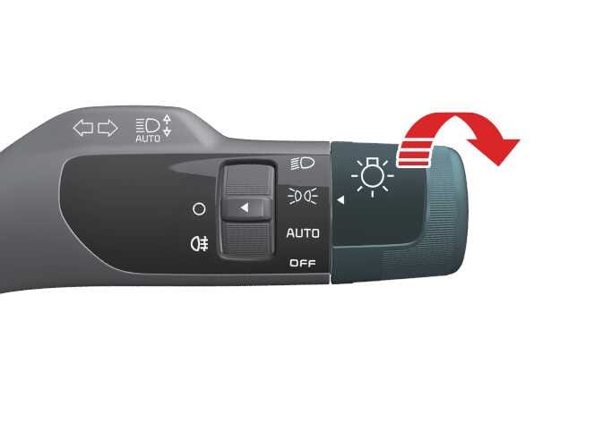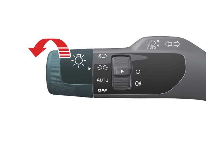 Wenn sich der Lichtschalter in der Stellung Positionsleuchte befindet, schalten sich die vordere Positionsleuchte, die Zusatzleuchte (ausstattungsabhängig), die Rückleuchte und die Kennzeichenbeleuchtung ein.