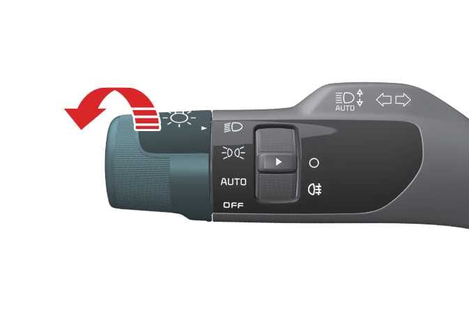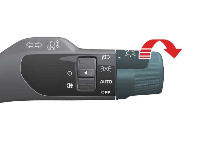 In der Schalterstellung „Scheinwerfer“ sind die Scheinwerfer (Abbendlicht), das Rücklicht und die Kennzeichenbeleuchtung eingeschaltet (ON).