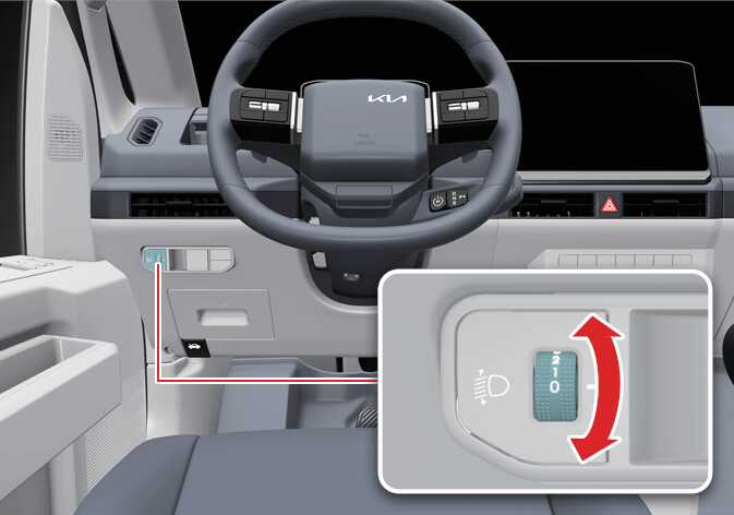 Um die Leuchtweite entsprechend der Anzahl der Insassen und dem zugeladenen Gewicht im Kofferraum einzustellen, drehen Sie das Stellrad.