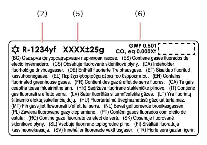 Kennzeichnung des Kältemittels für die Klimaanlage