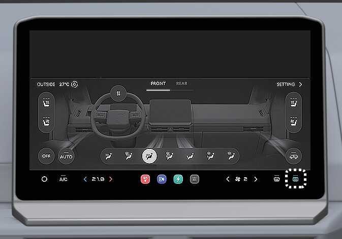 Tippen Sie auf das Symbol für die Heckscheibenheizung. Die Anzeige über dem Heckscheibenentfroster-Symbol erscheint, wenn der Entfroster eingeschaltet ist.