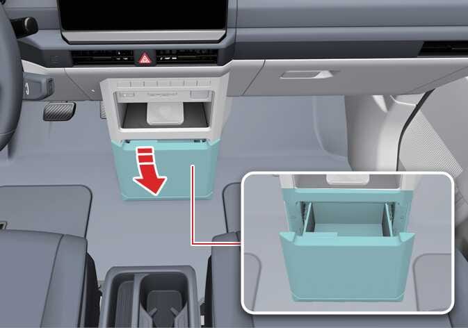 Verschiebeplatte der Mittelblende OSW035015 So verwenden Sie die Verschiebeplatte der Mittelblende: Drücken Sie den Hebel und ziehen Sie das Verschiebefach heraus.